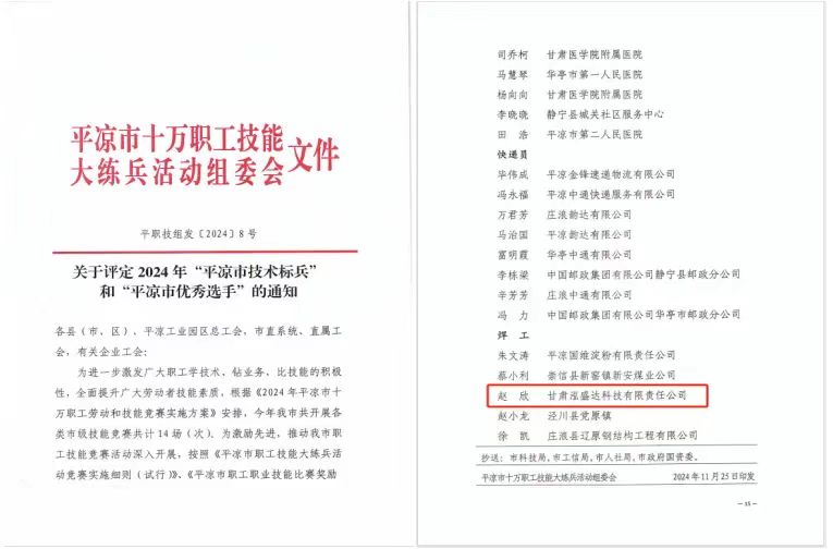 2024-11-26近日,平?jīng)鍪惺f職工技能大練兵活動組委會印發(fā)了關(guān)于評定2024年“平?jīng)鍪屑夹g(shù)標(biāo)兵”和“平?jīng)鍪袃?yōu)秀選手”的通知,甘肅泓盛達(dá)科技有限責(zé)任公司趙欣獲得“平?jīng)鍪袃?yōu)秀選手”稱號。趙欣此次獲得“平?jīng)鍪袃?yōu)秀選手”榮譽(yù)稱號,既是對他個人敬業(yè)精神的充分肯定,也是對公司