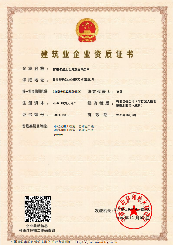 2024-12-05近日,產(chǎn)投集團(tuán)下屬企業(yè)水建公司申請的市政資質(zhì)已順利獲得許可。市政資質(zhì)許可是衡量企業(yè)在市政工程領(lǐng)域綜合實力的重要標(biāo)準(zhǔn),涵蓋城市道路、橋梁、排水、照明等多個領(lǐng)域。水建公司具備承接各類市政工程項目的資格,且在企業(yè)資產(chǎn)、專業(yè)技術(shù)人員、技術(shù)裝備以及工程業(yè)績等方